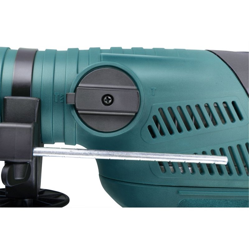 Моќен ударен чекан за кршење и дупчење со SDS max прифат. Дупчење во бетон 35 mm. Со анти-вибрационен систем кој ги намалува вибрациите и заморот при работа. Сијаличка за сигнализирање кога четкиците се истрошени. Ударнот чекан се исклучува автоматски при истрошени четкици.6 брзински мотор со постојана контрола на брзината.Главни технички параметри: Напон / фреквенција: 230V/50Hz Моќност: 1100W брзина: 300-720/min број на удари: 2000-4200/min сила на удар 9J футер: SDS max, во куфер, тежина 6 kg