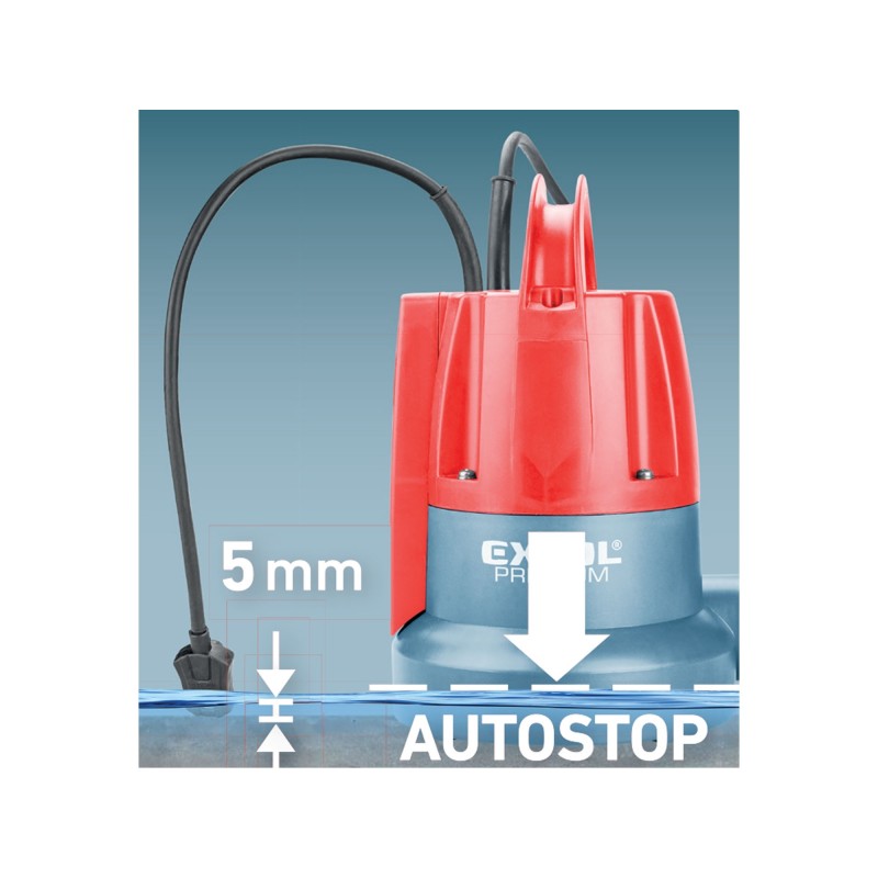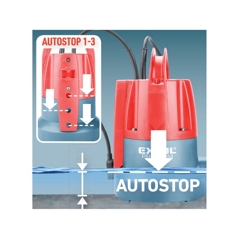 КАРАКТЕРИСТИКИ Одличен модел погоден за пумпање до "сувост" во градинарски базени, помали простори или контејнери. Благодарение на моторот 400W, максималниот проток на пумпата е 8000 l / h, а максималното потопување е 7m. Цврсти нечистотии со максимална големина од 1 mm ќе поминат низ пумпата. Пумпата може да работи во три режими - пумпање до одредена висина, пумпање додека има вода во пумпата, рачен режим (потребно е присуство на операторот). Наместо стандарден пливачки прекинувач, пумпата е опремена со сензор и овој сензор може да се постави на потребната висина или слободно да се постави на дното на пумпаниот простор. Веднаш штом сензорот е над нивото на водата, пумпата ќе пумпа уште 3 минути и потоа ќе се исклучи. За целосно исцедување на водата, потоа можете да ја префрлите пумпата во рачен режим и да почекате да ја исцеди остатокот од водата. Цевка со дијаметар од 1 ”, 1 1/4” или 1 1/2 ”може да се постави на приклучокот за цревото. За да се зголемат перформансите при пумпање мали количини, пумпата е опремена со неповратен вентил. Пумпата е дизајнирана за испумпување чиста услужна вода без никаква механичка контаминација. ТЕХНИЧКИ ПАРАМЕТРИ: напон / фреквенција 230V / 50Hz, потрошувачка на енергија 400W, максимален проток 8000 л / ч = 133 л / мин, максимум празнење 7 м, максимална длабочина на потопување 7 м, мин. ниво на вода 1мм, ⌀ излез 1 ”- 1 1/4” - 1 1/2 ”, максимална пропусност 1мм, должина на кабел за напојување 10м, употреба за чиста вода, тежина (без кабел) 3,4 кг