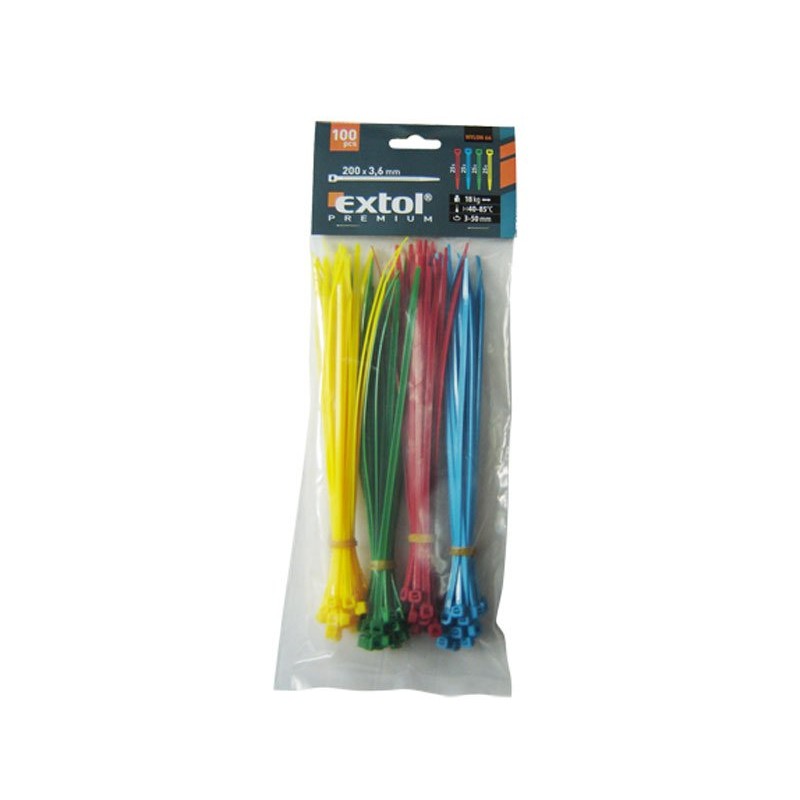 .Главни технички параметри 150x2,5mm опис: 100пар (4x25пар) 4бои, сила на оптегнување 8kg, температурен опсег -40-85° C, материјал: NYLON 66, норми: EN 62275, UL94V-2