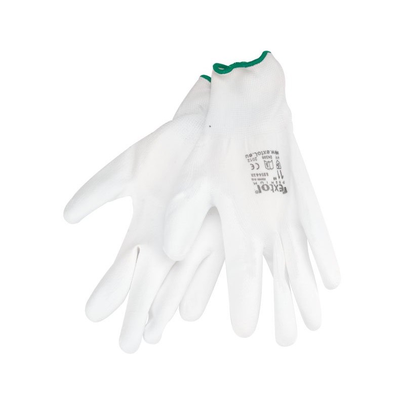 Ракавици од полиестер натопени во PU-полиуретан, бели, големина 10", EXTOL PREMIUM