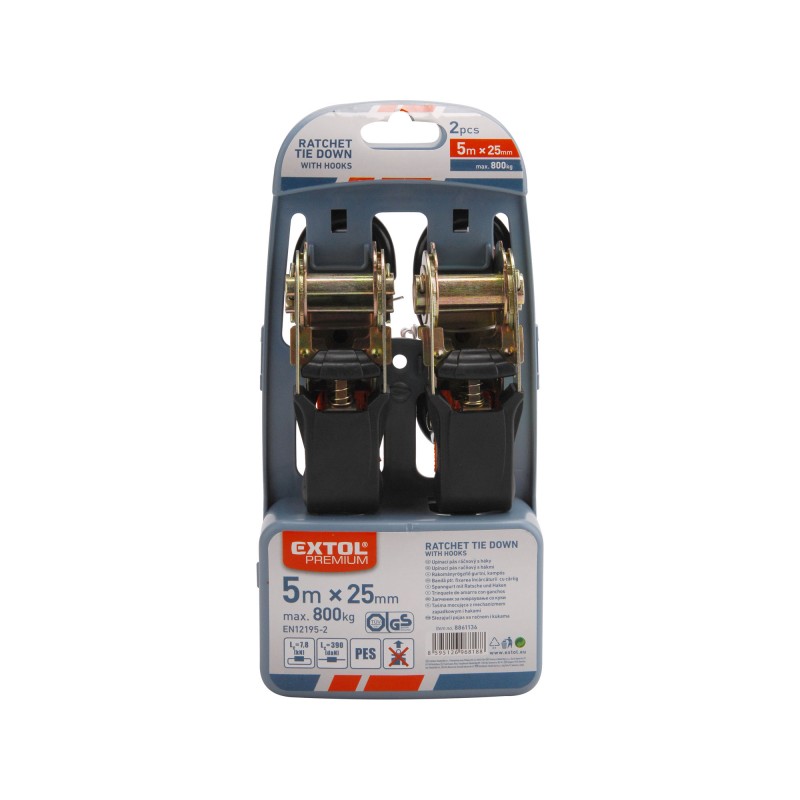 Ремен за затегање со кука и крцкало, 5mx25mm, сет 2пар. max 800kg