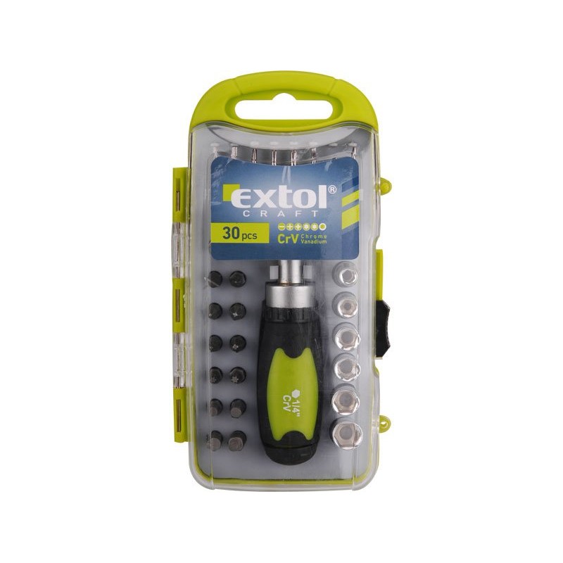 Главни технички параметри: (-) 4-5,5-7mm, PH 0-1-2, PZ 1-2, HEX 4-5-6mm, T 10-15, насадни клучеви 5-6-7-8-9-10mm, 1/4“ продолжеток 75mm, мини битови: (-) 2-2,5-3mm, PH 000-00-0, T 6-8, адаптер за мини битови 5/32“, редукција на 1/4“ насадни клучеви, комбиниран клуч со крцкало 1/4“, материјал: CrV