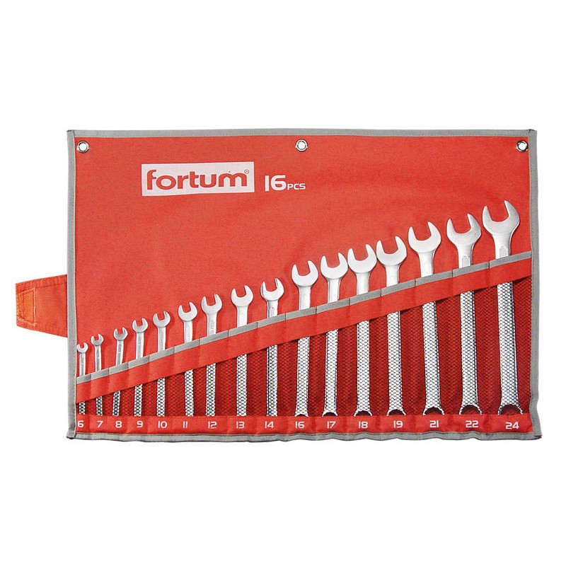 Клучеви вилушкасти/окасти сет 16пар, 6-7-8-9-10-11-12-13-14-16-17-18-19-21-22-24mm, FORTUM