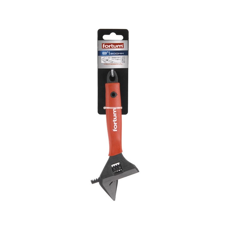 Прилагодлив клуч наменет за инсталатери. Како додаток на својот неверојатен опсег 0-38 мм, опремен е со ултра тенки ковани вилици од челик 61CrV5. Благодарејќи на нив и малите димензии, овозможено е со целиот клуч да се влезе во секоја пукнатина. Главниот технички параметри: 210mm/ 8 ", 0-38mm, М2-M24 Материјал: 61CrV5