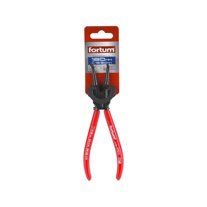Fortum клештите за зегери се изработени од високо квалитетен chrom-vanadium челик 61CrV4 класа. Тие имаат солидни цилиндрични вилици за да се спречи пролизгување, тенка форма и PVC рачка против пролизгување. Главни технички пареметри: 180m Опис: Опсег од 19 до 60 mm Материјал: 61CrV4 норми: TÜV / GS