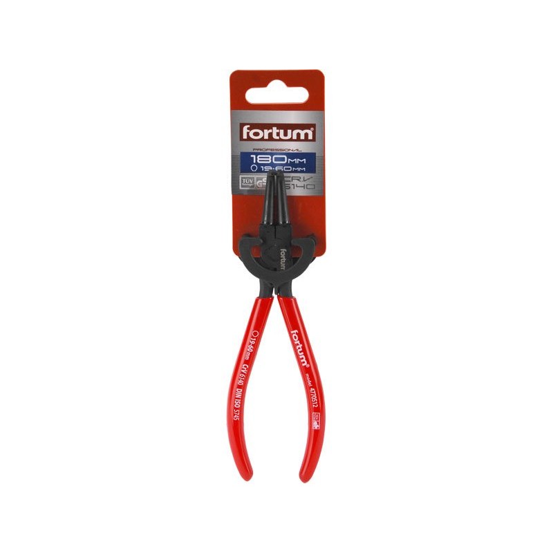 Fortum клештите за зегери се изработени од високо квалитетен ​​chrom-vanadium челик 61CrV4 класа. Тие имаат солидни цилиндрични вилици за да се спречи пролизгување, тенка форма и PVC рачка против пролизгување. Главни технички пареметри: 140m Опис: Опсег од 10 до 25 mm Материјал: 61CrV4 норми: TÜV / GS