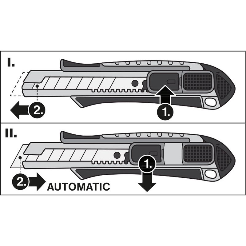 Главни технички параметри: ширина 18mm, користејќи го ова копче и држејќи го (независно од функцијата за автоматско заклучување), сечилото на скалперот може брзо да се подигне, а ако копчето е пуштено, сечилото автоматски се вметнува