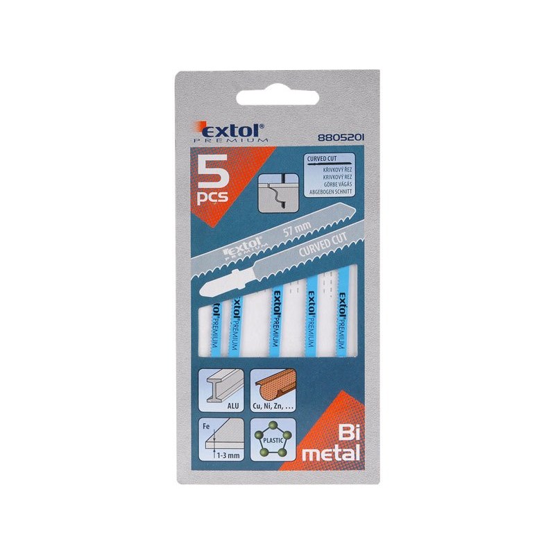 За сечење алуминиум, челик, други метали, пластика. Тип на сечење: крив рез. Главните технички параметри: дебелина 1mm, длабочина на рез 1-3mm, брусени брановидни заби 57x1,5mm Опис: прифат BOSCH Материјал: Bi-metal