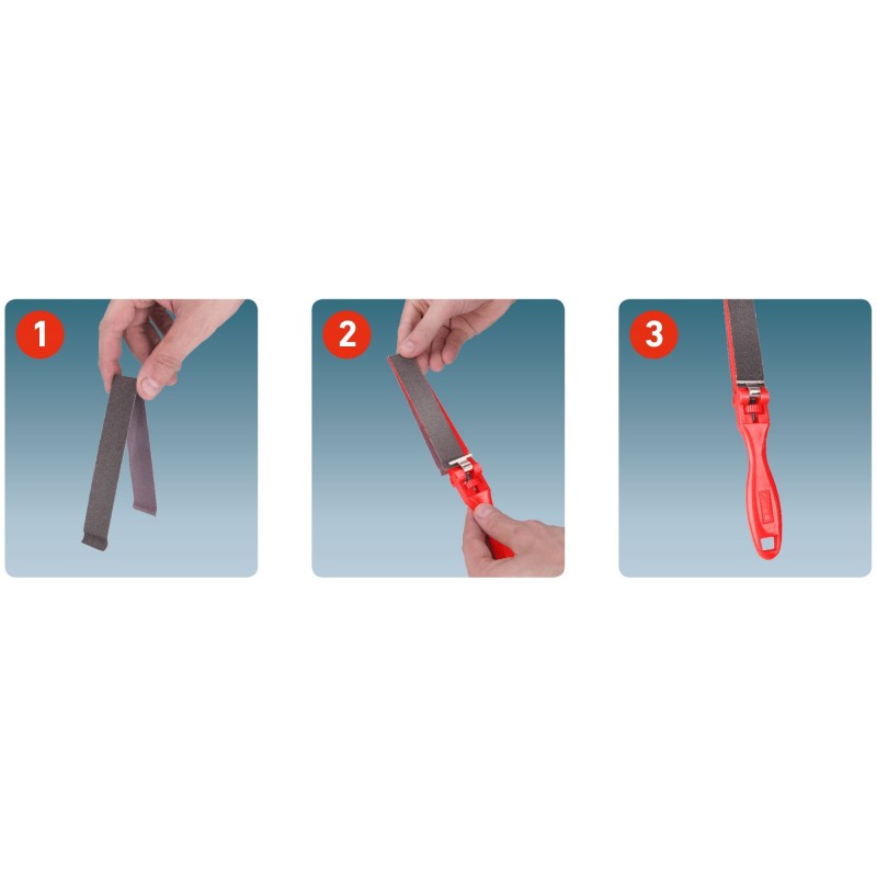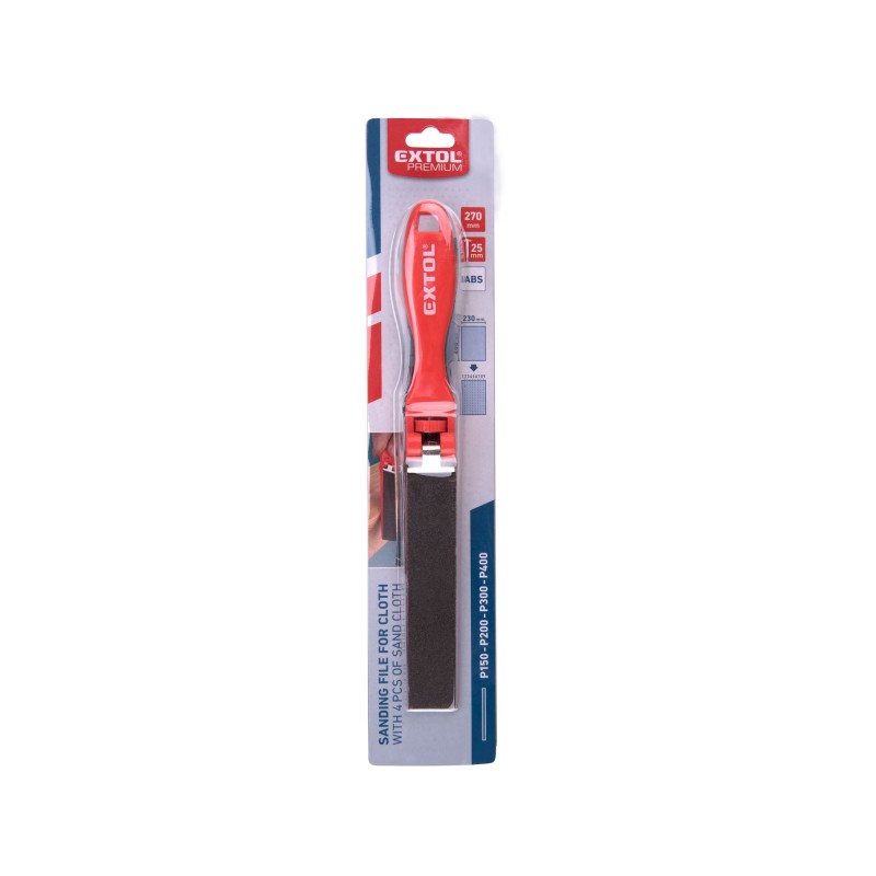 ТЕХНИЧКИ ПАРАМЕТРИ должина: 270 мм дополнителен параметар: со четири платнени ленти 270x24mm во големина на зрно P150, P200, P300, P400