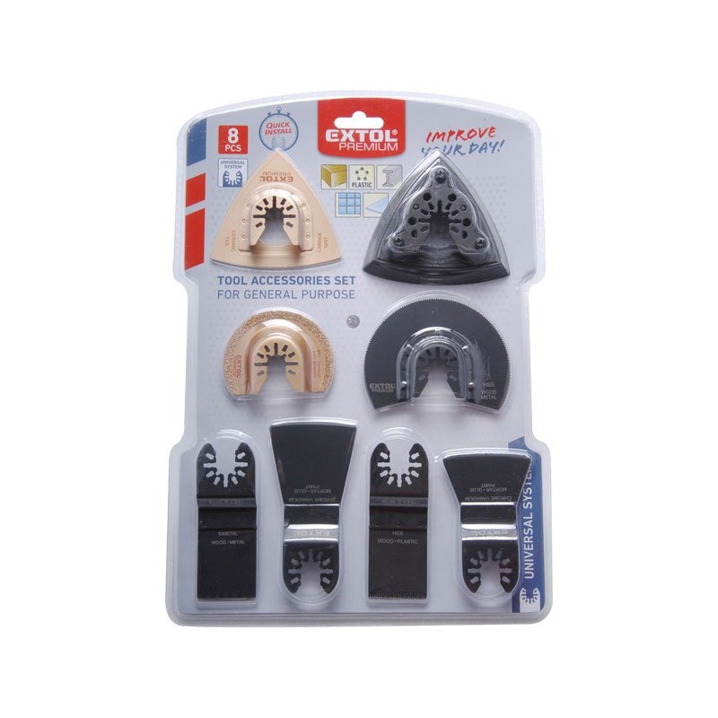 Главни техничи параметри: системот за прифат овозможува користење на мултифункционалниалати од разлини брендови како AEG, Black & Decker, Bosch, Dremel, Einhell, Extol, Fein, Makita, Milwaukee, Multi Master, PowerUp, Ridgid, Rockwell, Skil, Worx, Yato. HSS сегментна пила 88mm вметнувачка сегментна пила 34mm, BIM вметнувачки пилов лист 34mm, шпакла 30mm, флексибилна шпакла 49mm, карбидна сегментна пила 63,5mm, крабидна турпија делта форма, делтоидна папуча за прилепување брусна хартија.