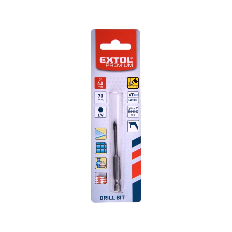 » Карбидна бургија за стакло/керамика, ф 4мм, EXTOL PREMIUM