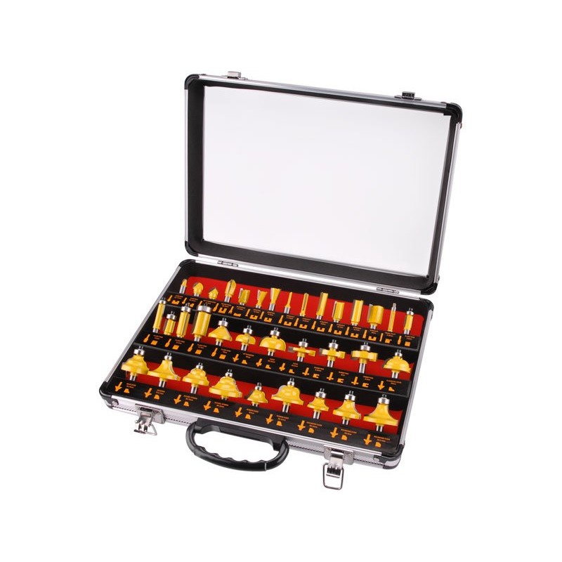 Фрези за обработка на дрво со SK парчиња, сет 35пар, носач 8mm, во метален куфер, EXTOL PREMIUM